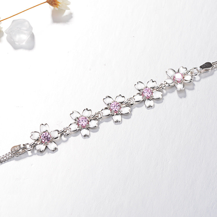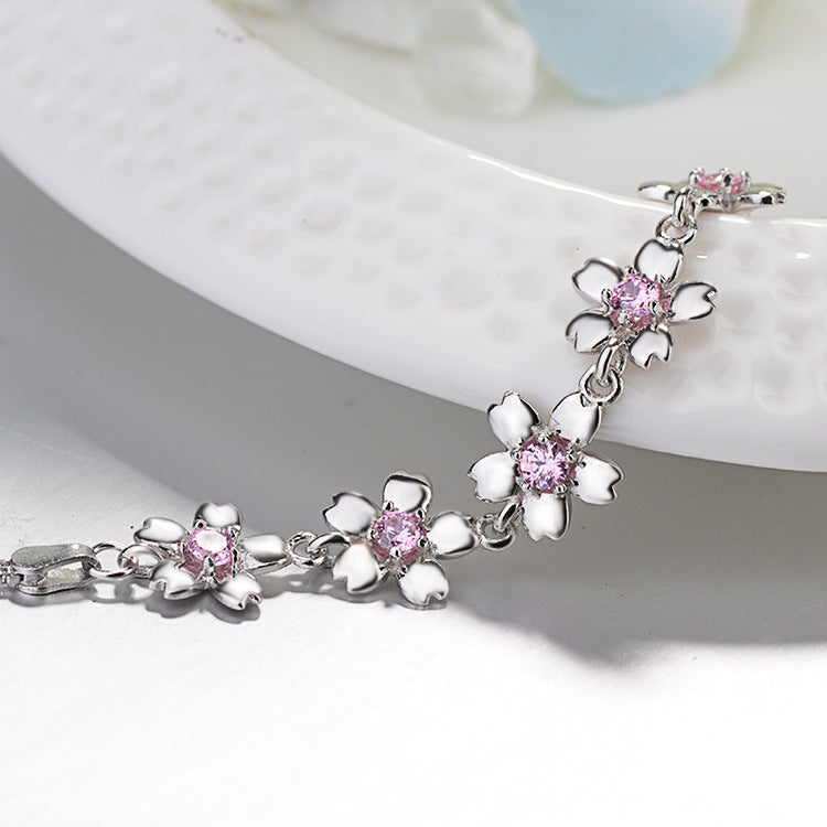 Sterling Silver Set Cherry blossom bracelet/ creative jewelry