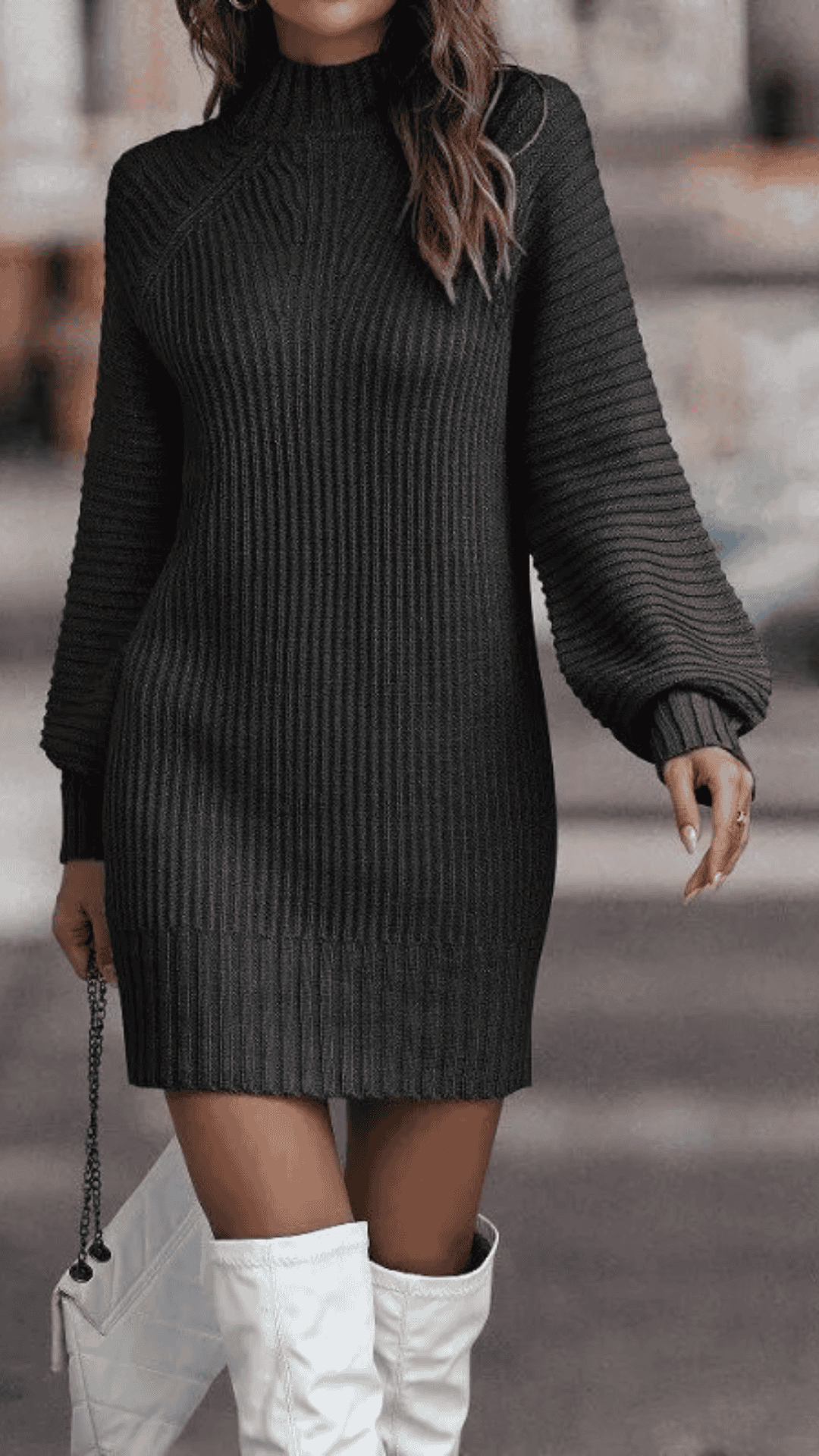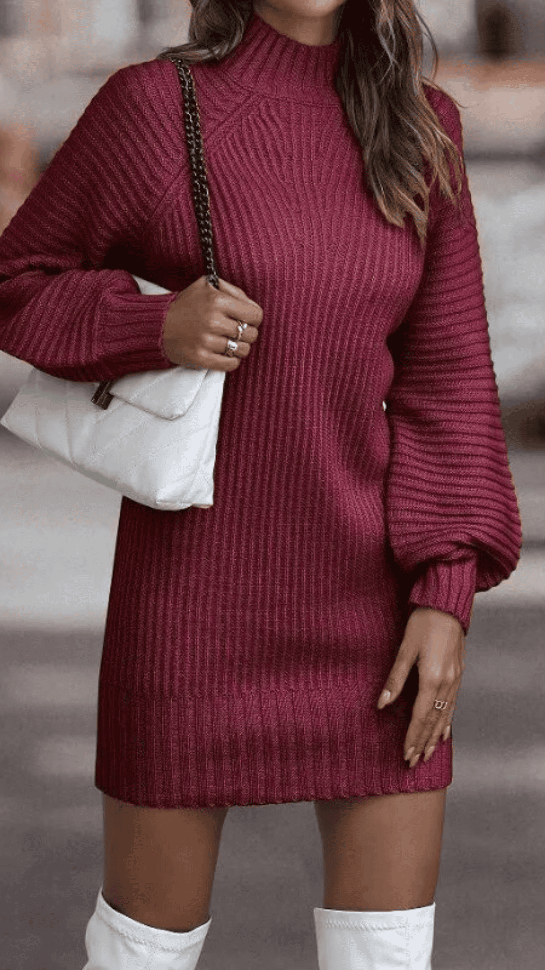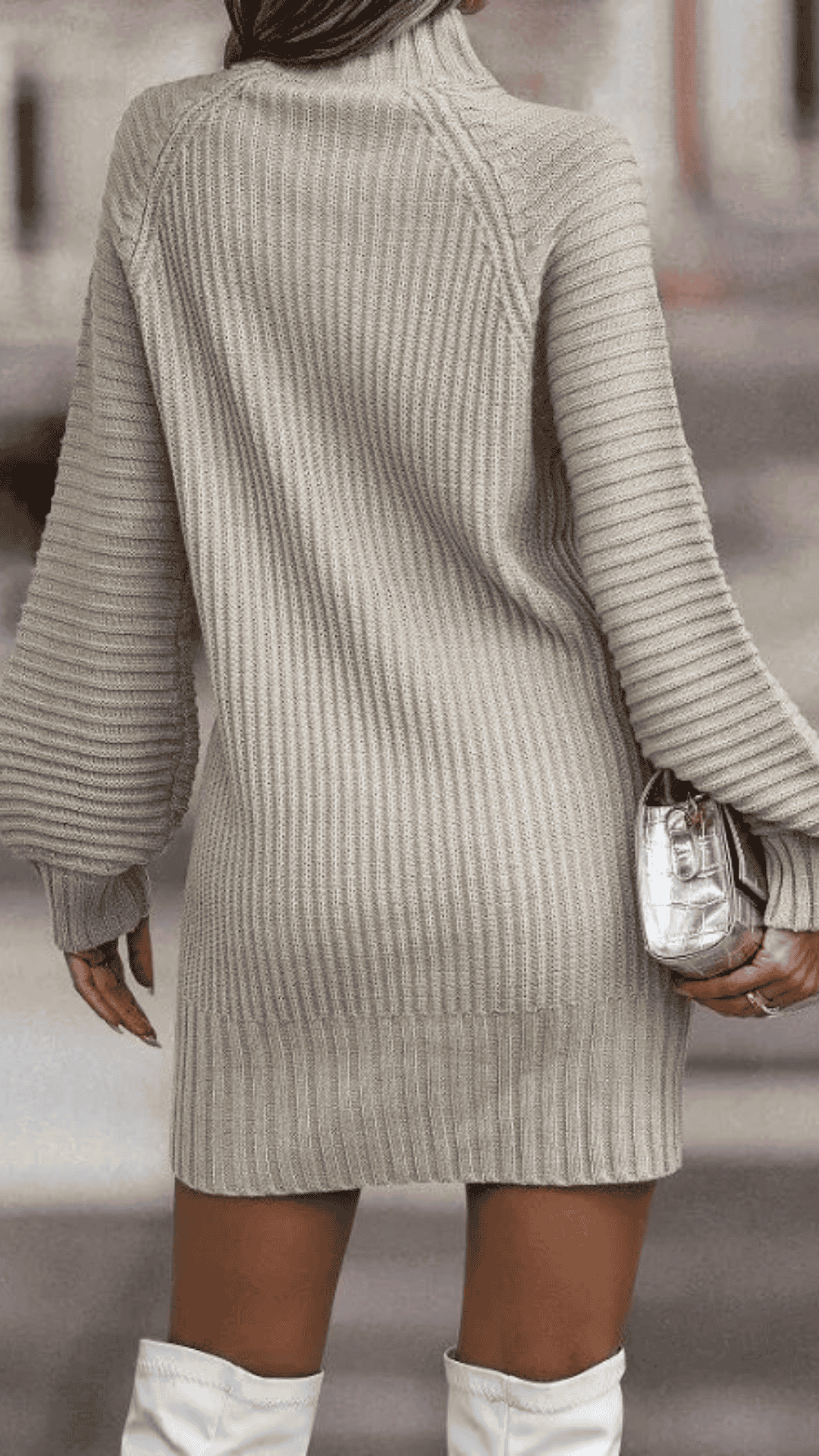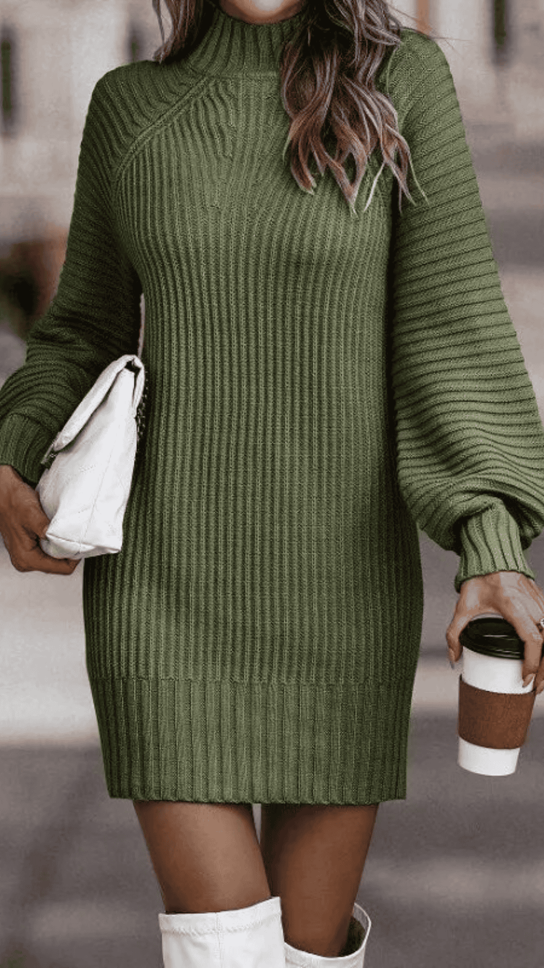 Vintage Winter Knitted Dress, is a chic addition to your winter wardrobe. This turtleneck lantern sleeve sweater dress offers a timeless style with a contemporary twist, making it a perfect choice for the upcoming fall or winter season.